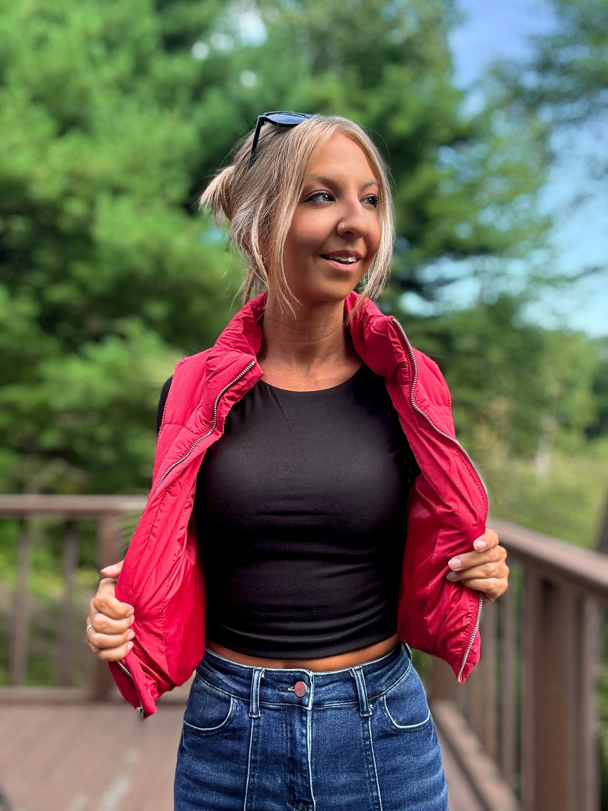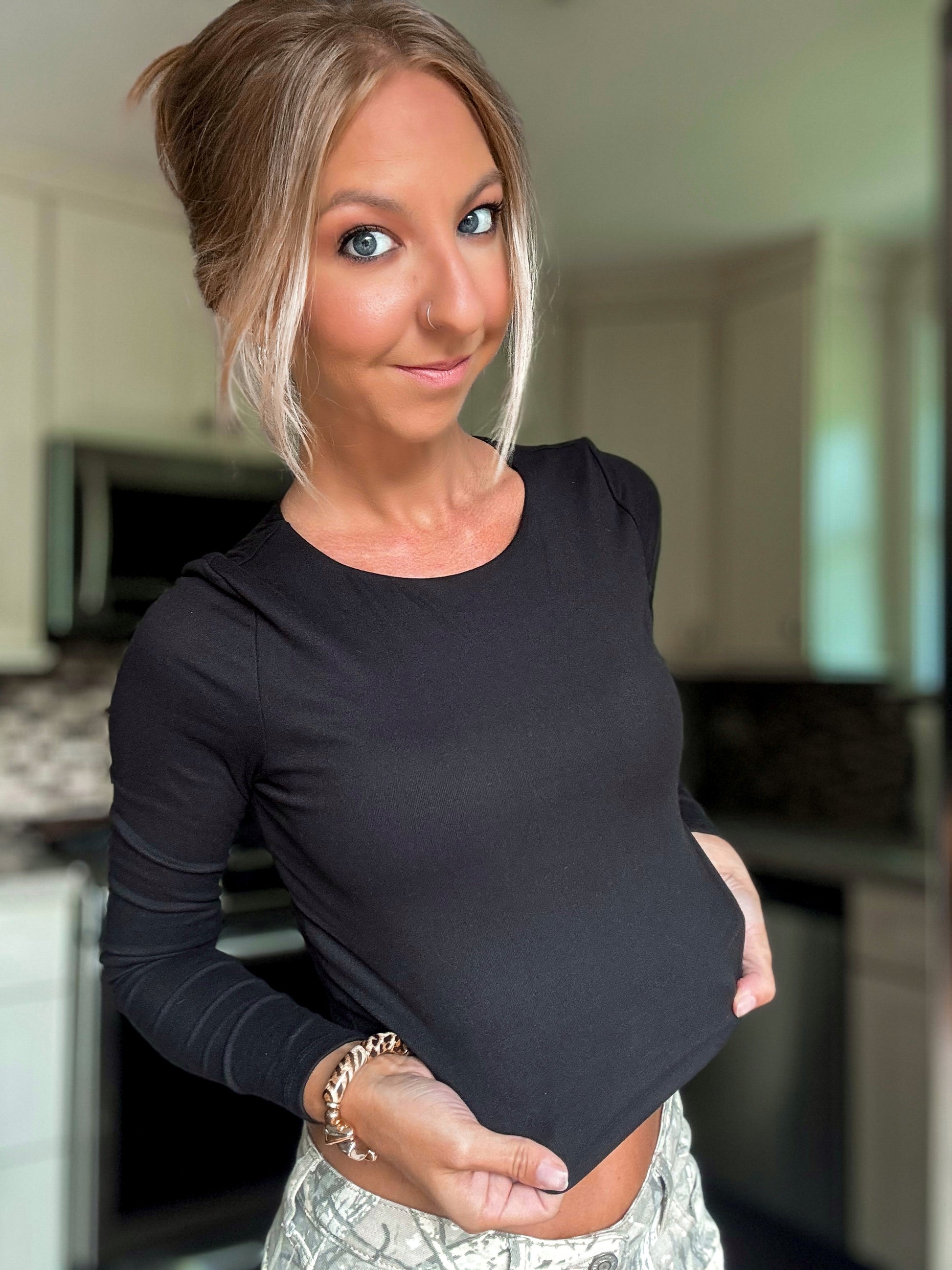 The top that turns heads—literally. The Double Take Crop features a sleek high neck, long sleeves, and a cropped fit designed in a double-layer fabric for extra coverage and a smooth, flattering silhouette. Wear it solo for a bold look or layer it up for chic versatility. Either way, it’s guaranteed to get a second look. Poly/spandex blend