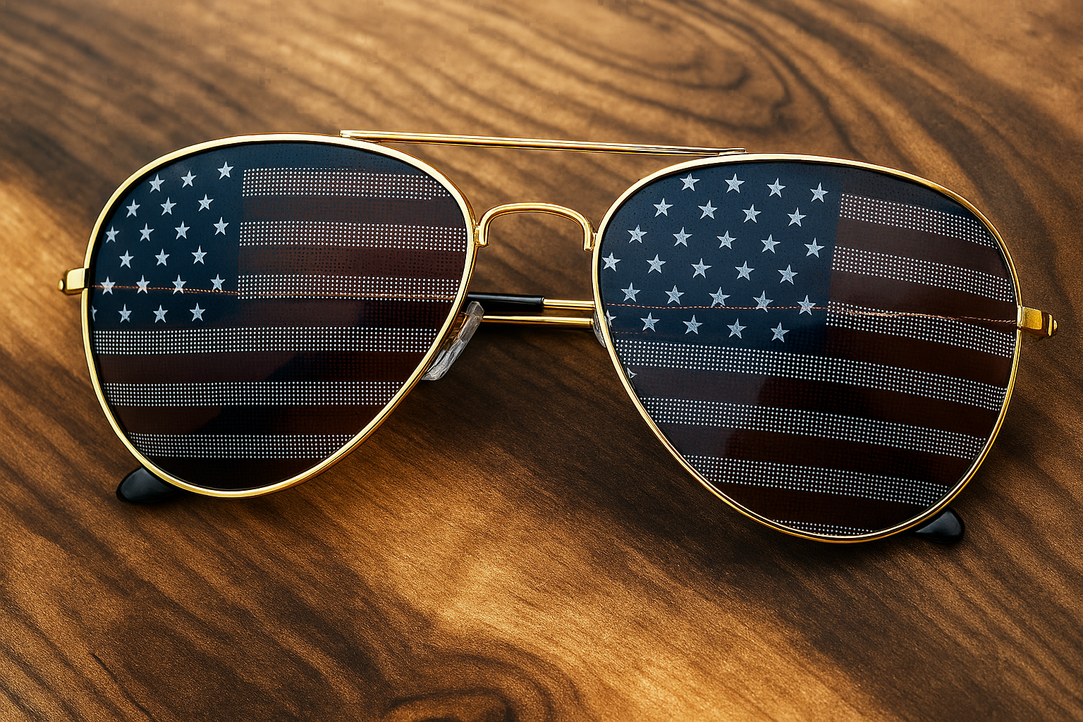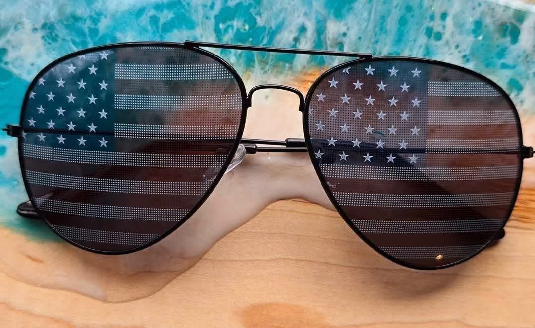 Show off your patriotic spirit with our Flag Aviators — where bold style meets American pride. Featuring a sleek aviator shape and detailed perforated lenses that showcase the stars and stripes, these sunglasses are made for sunny BBQs, fireworks, and all your Fourth of July festivities. Available in classic black or striking gold frames, they’re lightweight, comfortable, and designed to turn heads. Whether you're at the lake, the parade, or just soaking up the summer sun, these are the ultimate statement shades for true patriots.