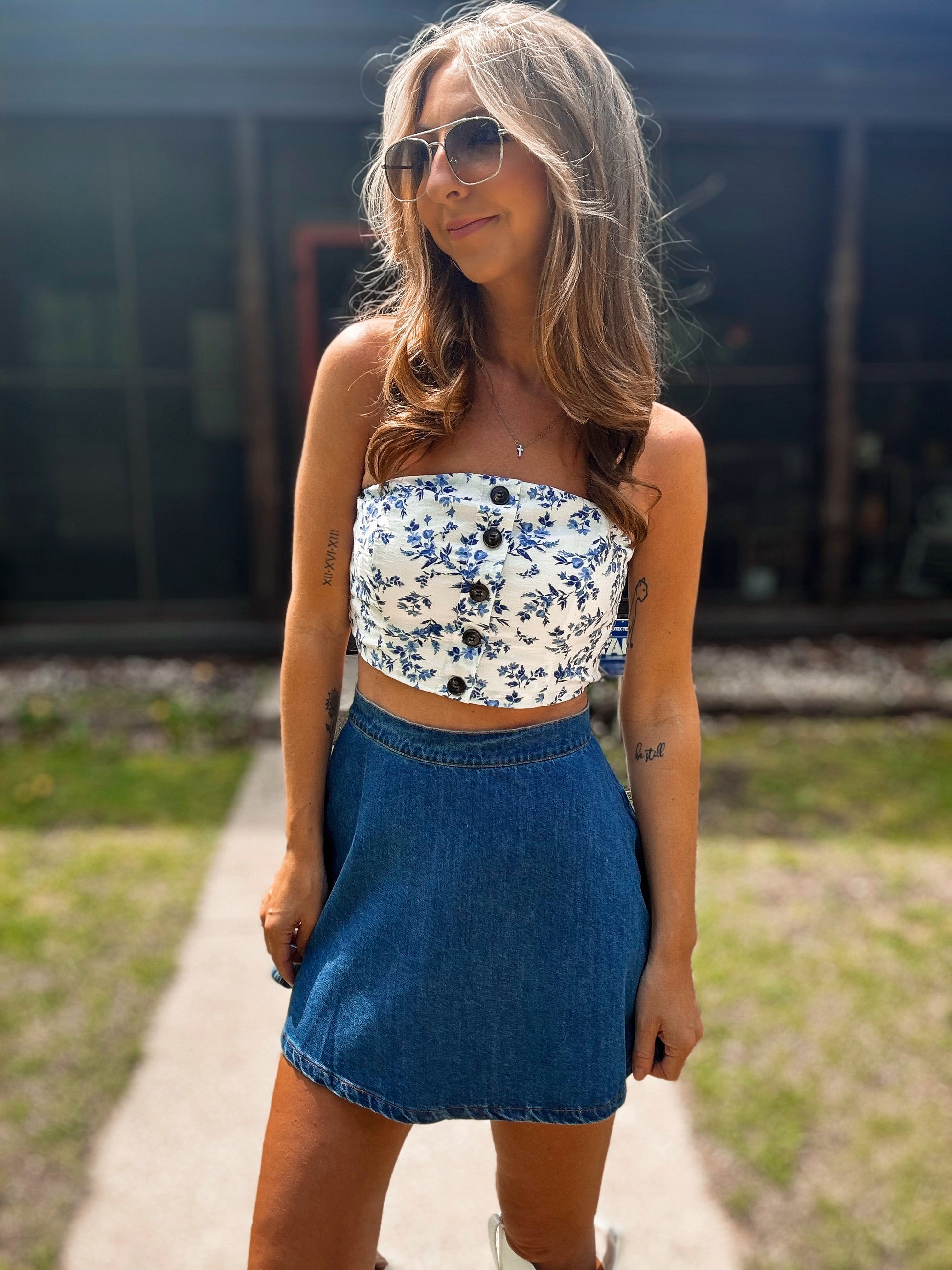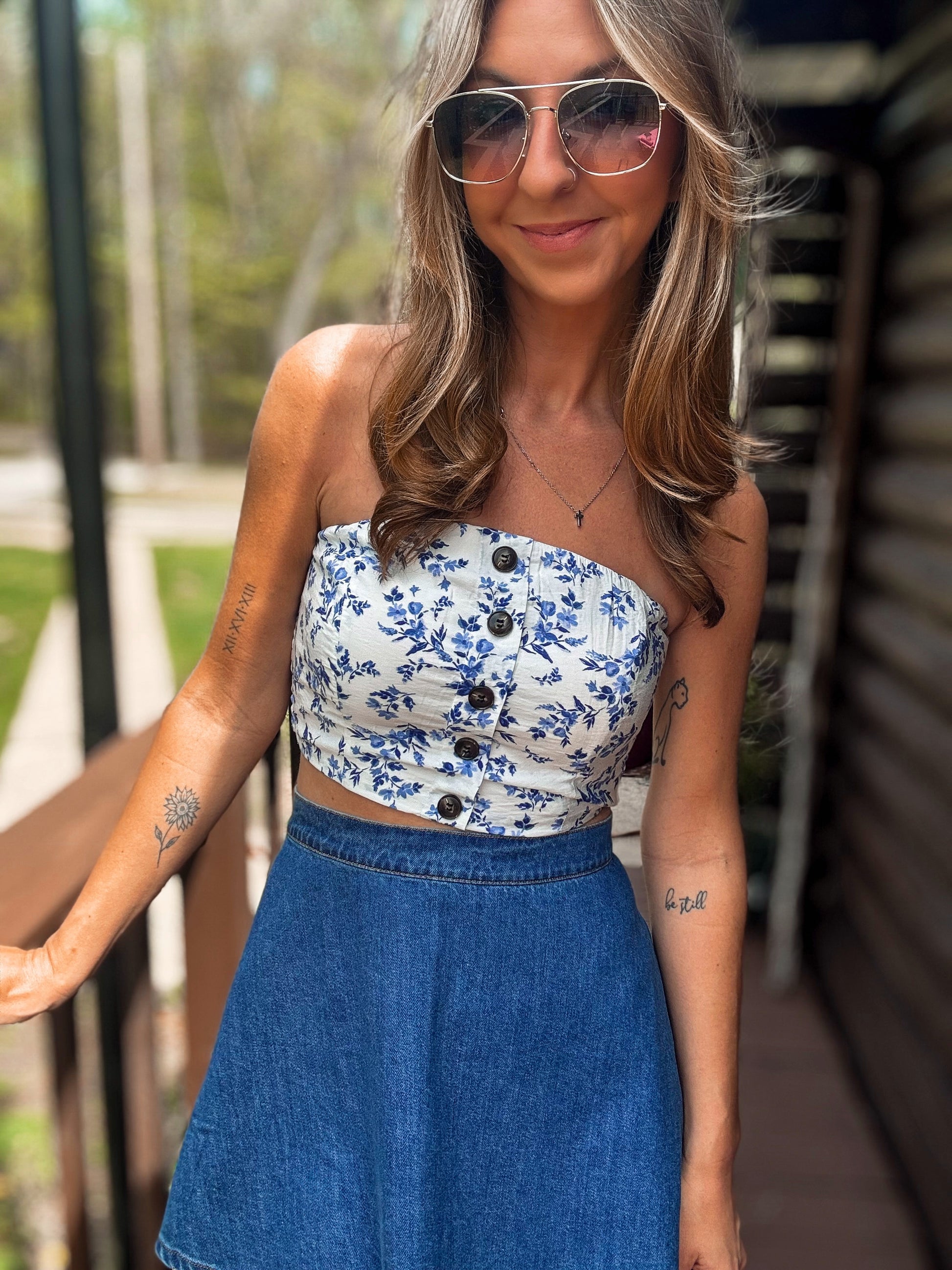 Whether you're heading to a beach party or a casual brunch, the Floral Blossom Bandeau Top is your go-to!