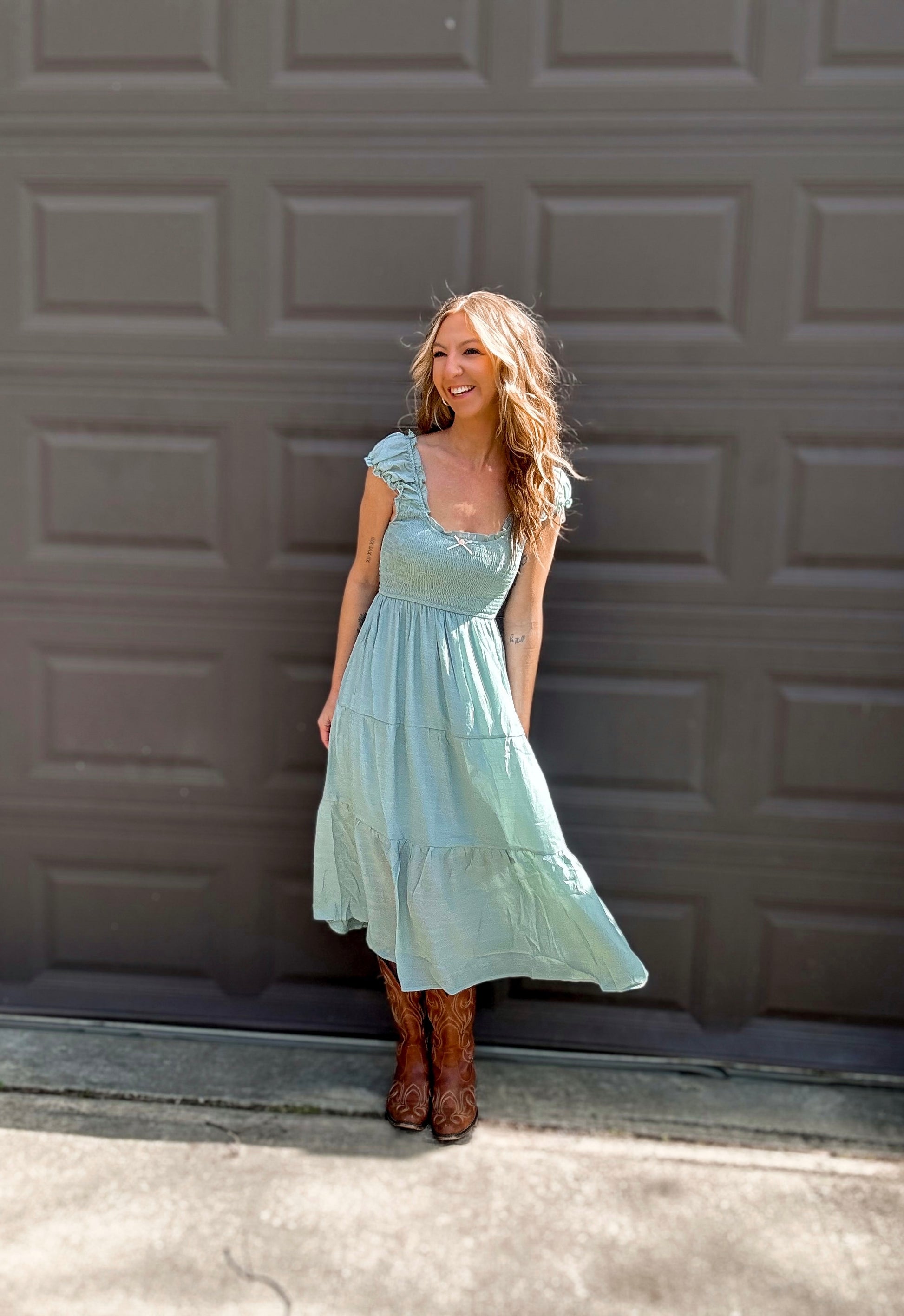 The Garden Breeze Smocked Maxi Dress is your go-to for easy styling. Featuring a flattering smocked bodice and flowy tiered skirt, this dress offers a relaxed yet polished fit. Delicate up top textured details add a feminine fitted touch, while the soft, lightweight fabric keeps you comfortable all day. Perfect for dressing up with heels or keeping it casual with sandals or boots, this versatile maxi is a must-have for any wardrobe.