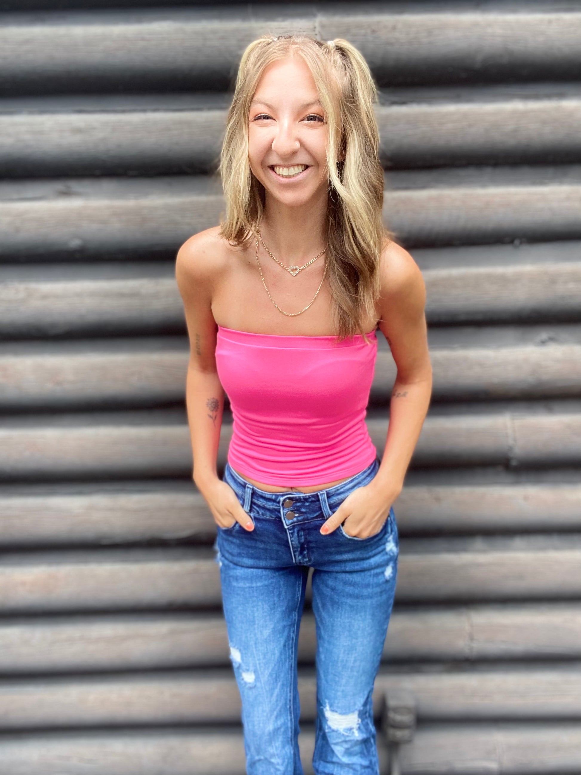 The Knit Tube Top features a seamless design, providing a smooth and streamlined look. Its minimalist yet chic aesthetic makes it incredibly versatile, allowing you to dress it up or down effortlessly.