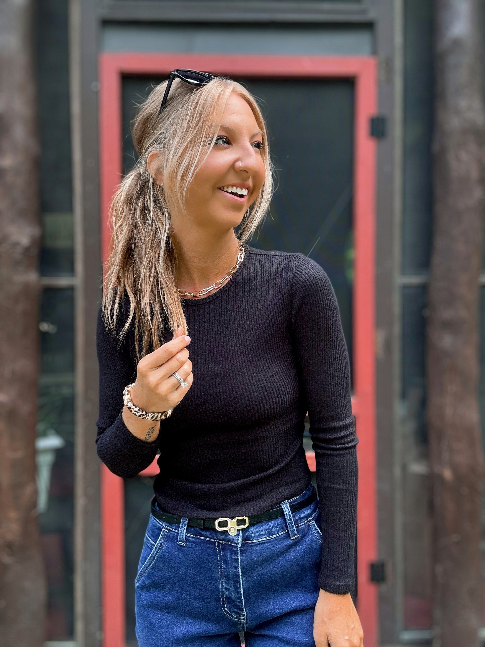 Meet your new go-to: the Perfect Fit Top. Crafted from soft, brushed Hacci rib, this slim-fit long sleeve sits perfectly at the waist for a flattering, streamlined silhouette. The classic crew neck makes it effortlessly versatile with a beautiful pattern to stand out. Ideal for layering or wearing on its own. With just the right amount of stretch and designed in the USA, it’s comfort and style rolled into one wardrobe essential.