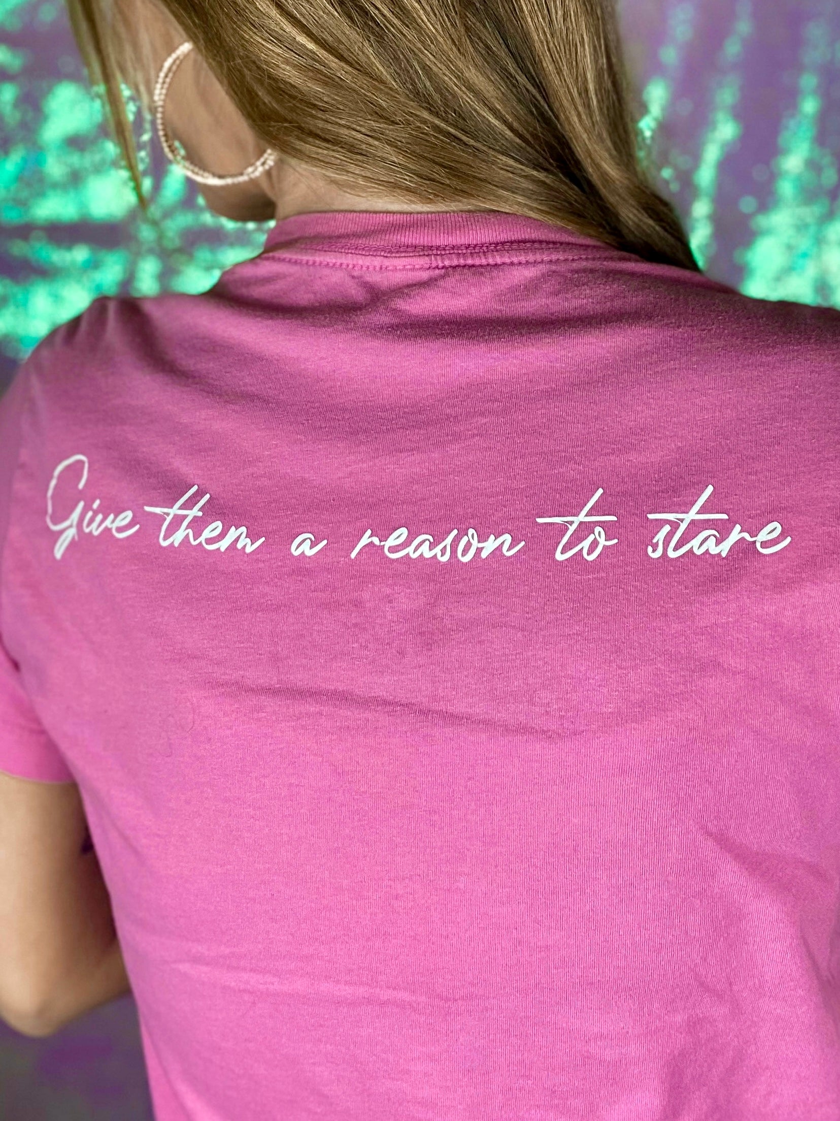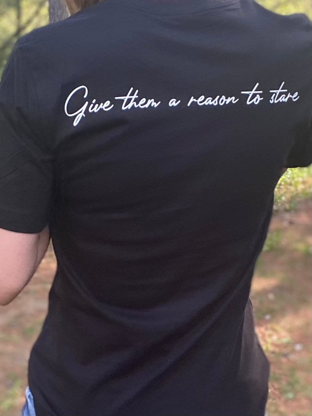 Welcome home to our first merchandise apparel for Sara Bauer Boutique! Made from 100% cotton with your choice of two colors. On the front is a logo for Sara Bauer Boutique with the back of the tee quoting our famous SBB quote “Give them a reason to stare.” These shirts will also give them something to talk about. Get yours today!