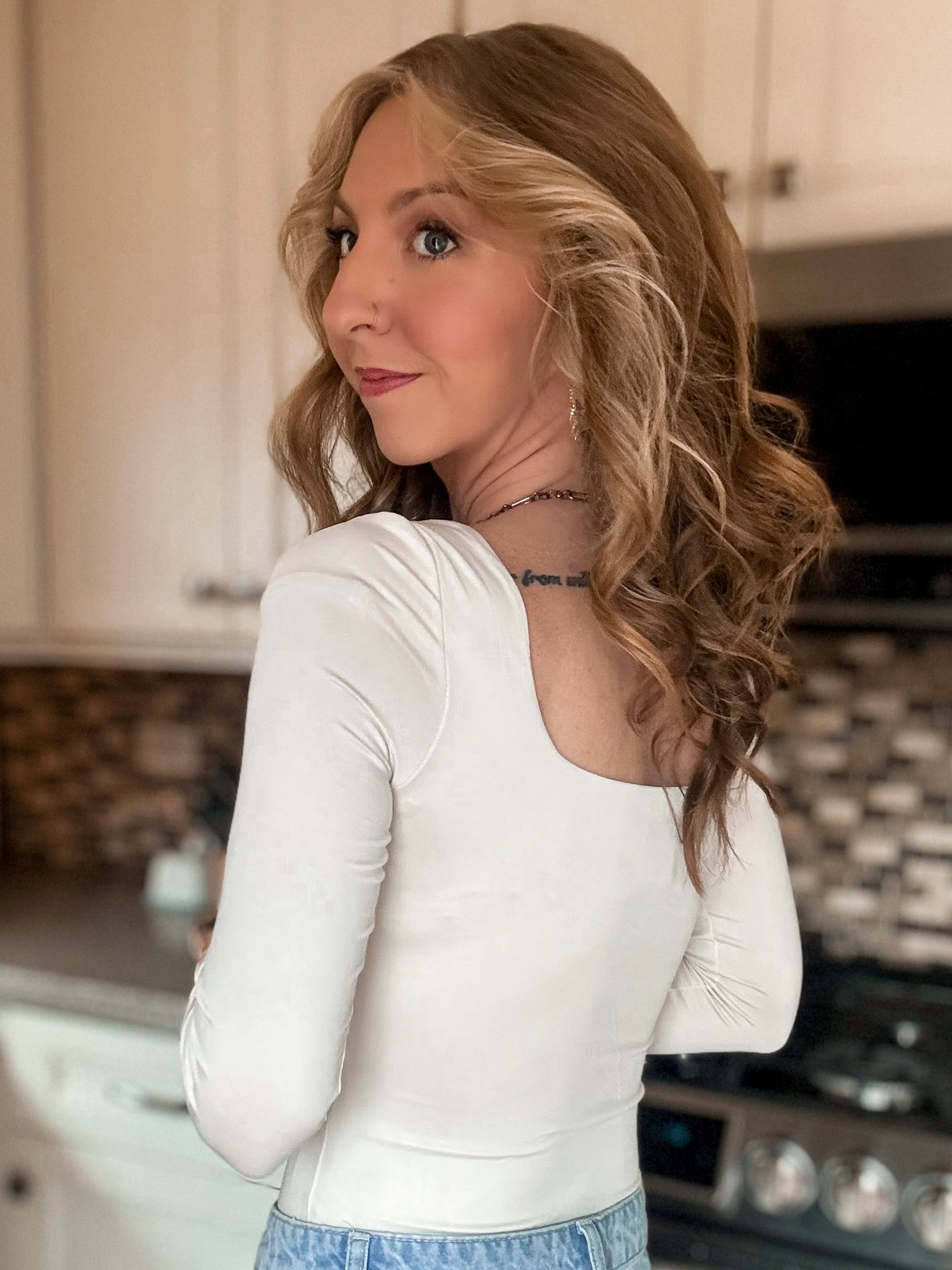 Your everyday go-to just got an upgrade! The Simply Sleek Bodysuit in light beige is soft, stretchy, and made to pair with anything. With a square neckline and long sleeves, it’s perfect for layering or wearing solo. The snap-button closure and thong back make it comfy and seamless under all your favorite jeans or skirts. A solid, easy-to-style piece that feels as good as it looks!