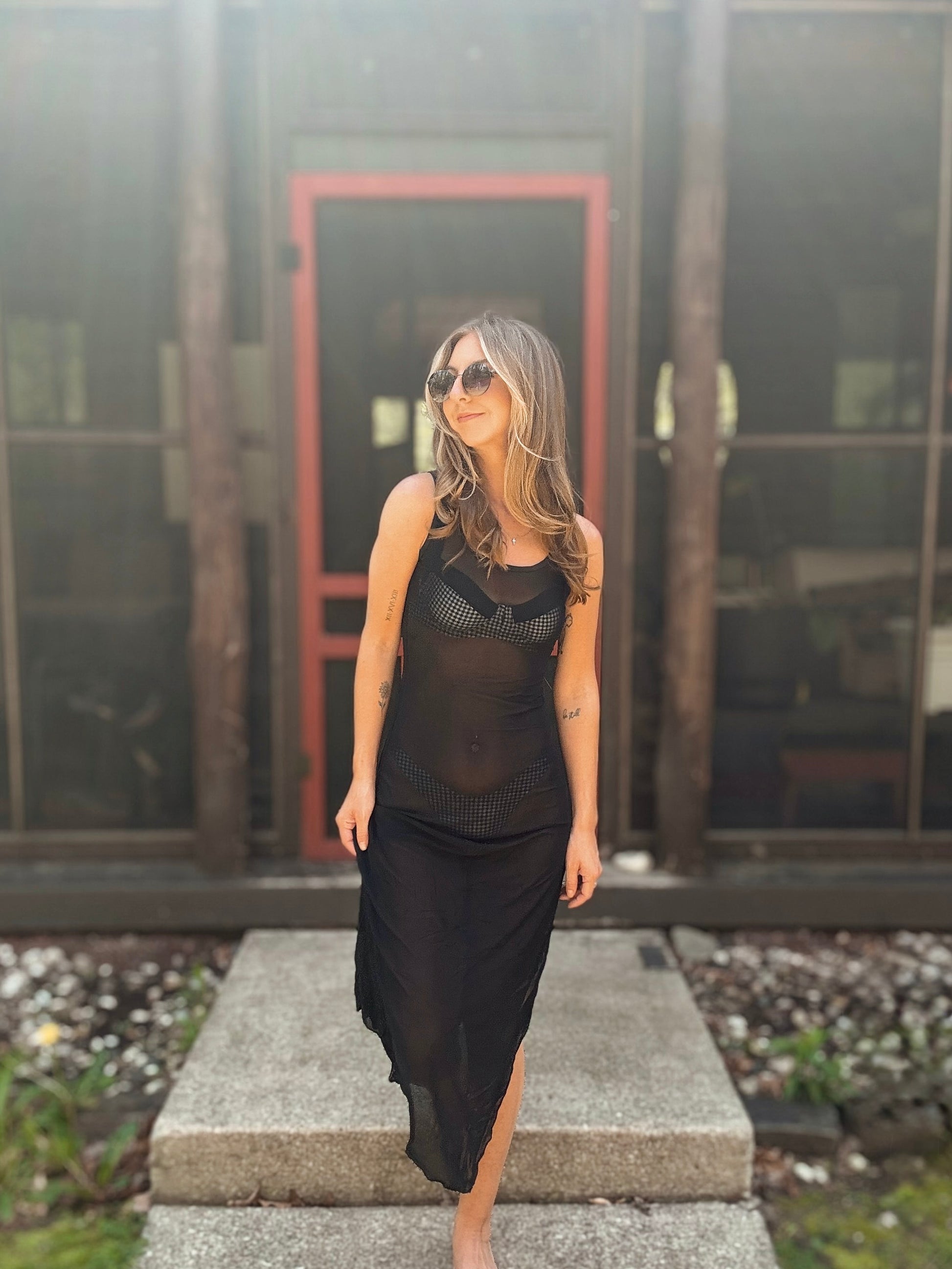 Meet The After Sun Cover-Up—an effortlessly chic, all-black mesh dress that’s as timeless as it is versatile. Designed with a flattering silhouette and lightweight fabric, it’s your perfect throw-on piece for everything from beach strolls to sunset cocktails. Breezy, comfortable, and endlessly stylish, this cover-up keeps you feeling confident long after the sun goes down.