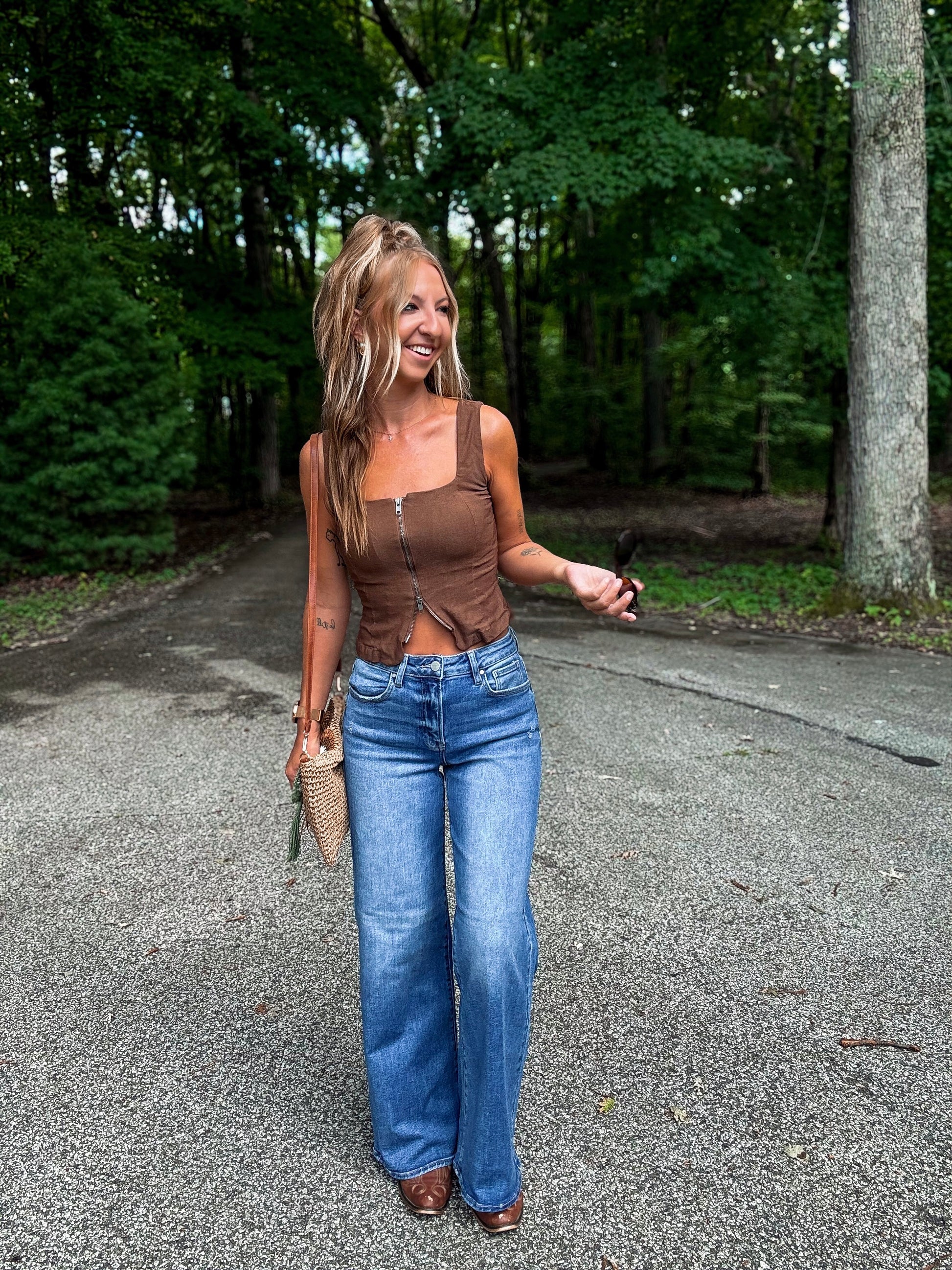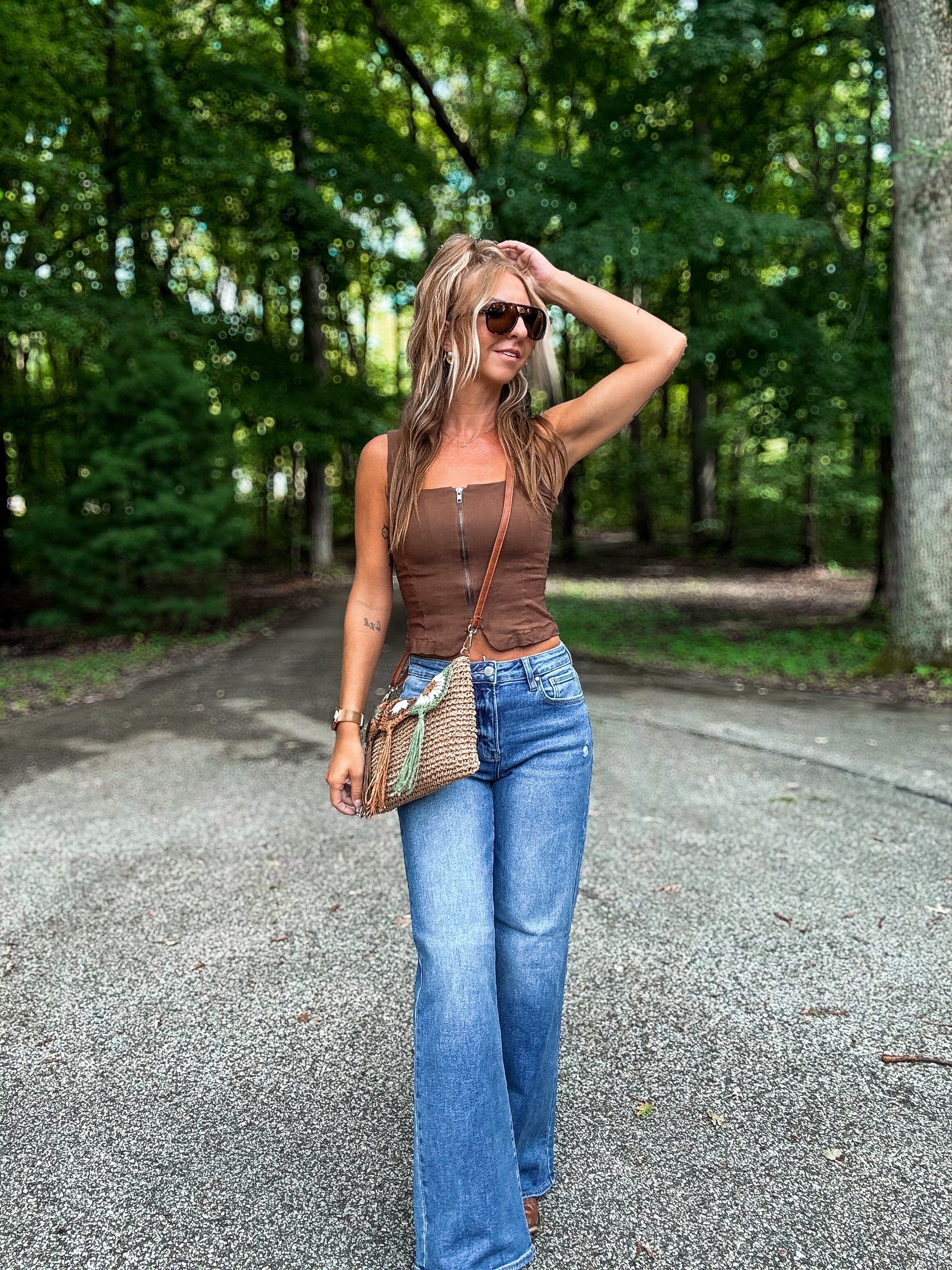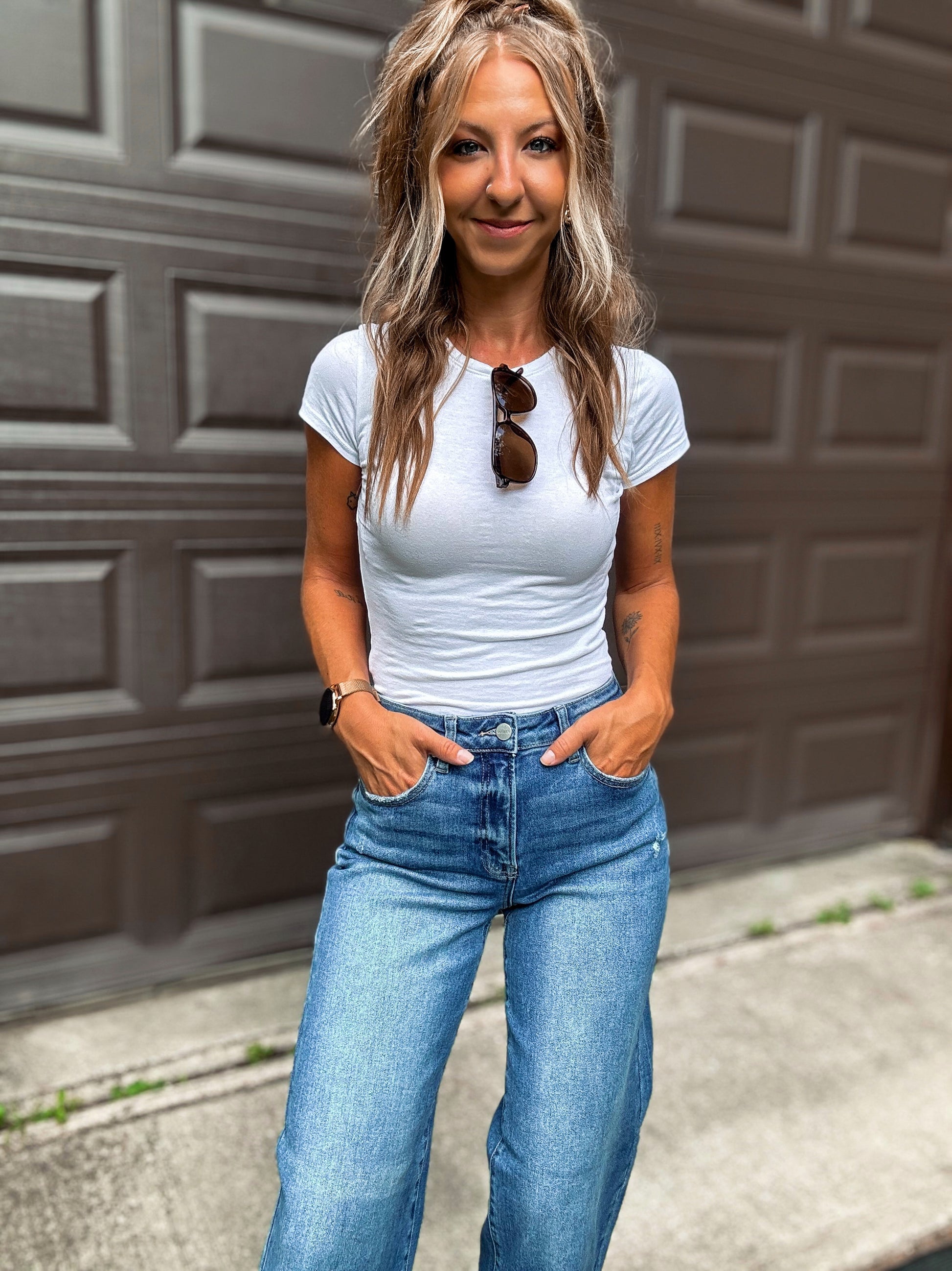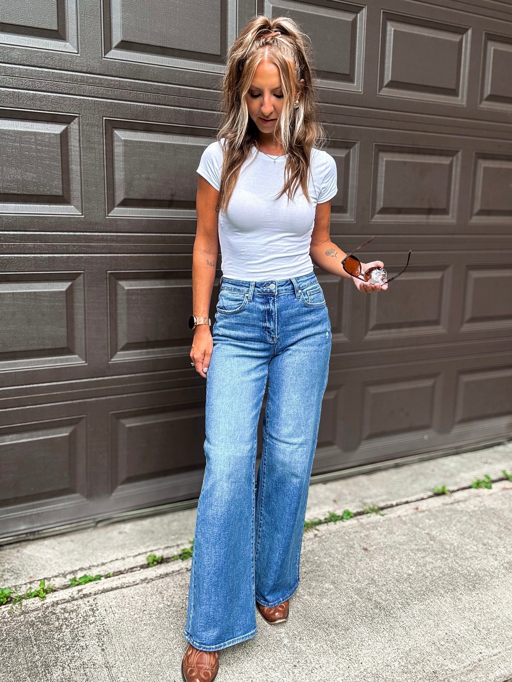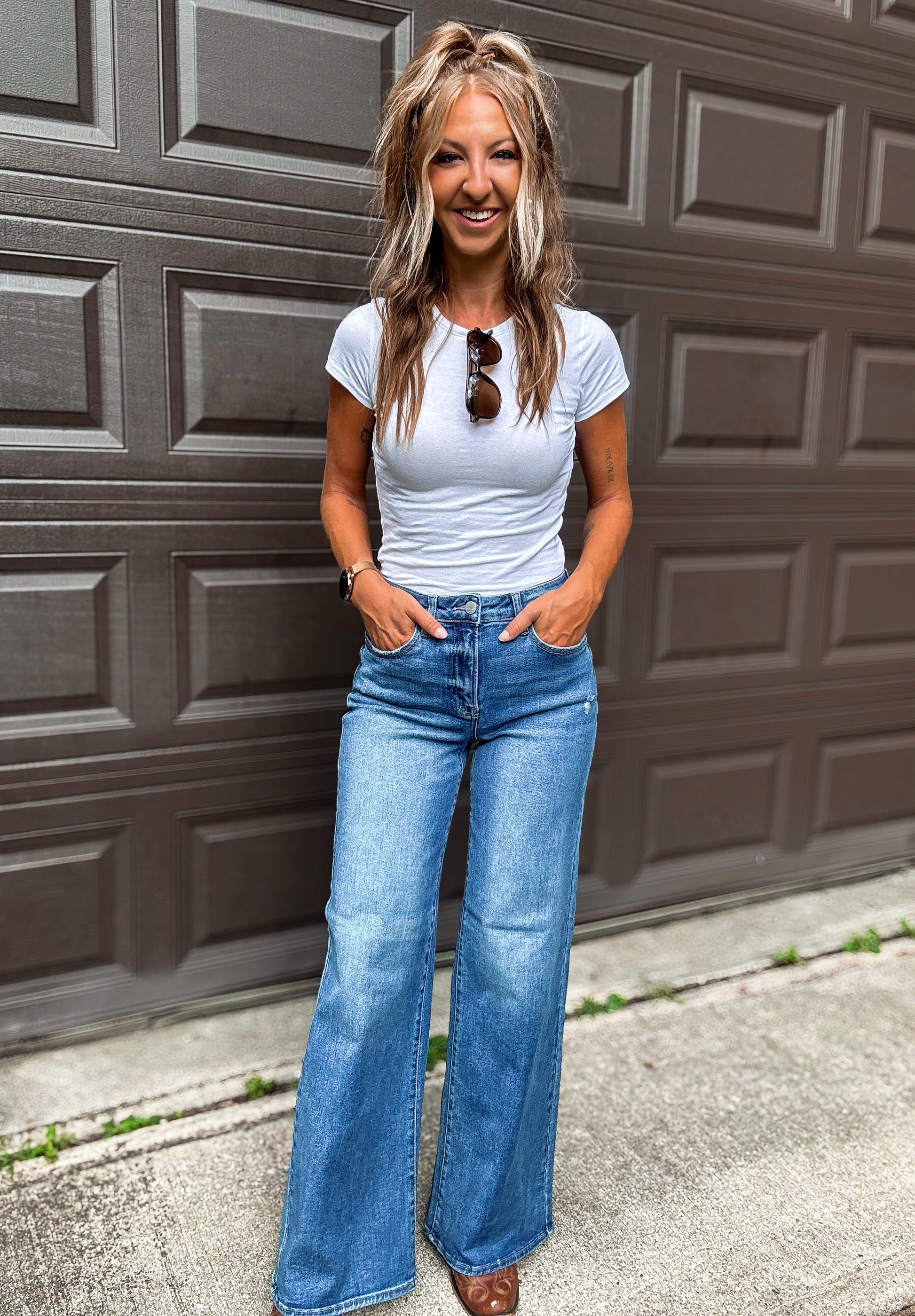 Take your denim game to new heights with Uptown Denim Jeans. Designed with a flattering 10 ¼” high rise and an easygoing 32” wide leg inseam, these jeans give you that effortlessly elongated look. The premium fabric blend—93% cotton, 5% polyester, 2% spandex—offers comfort, stretch, and structure in all the right places. Chic enough for a night out, relaxed enough for every day—these wide leg jeans are a true wardrobe essential.