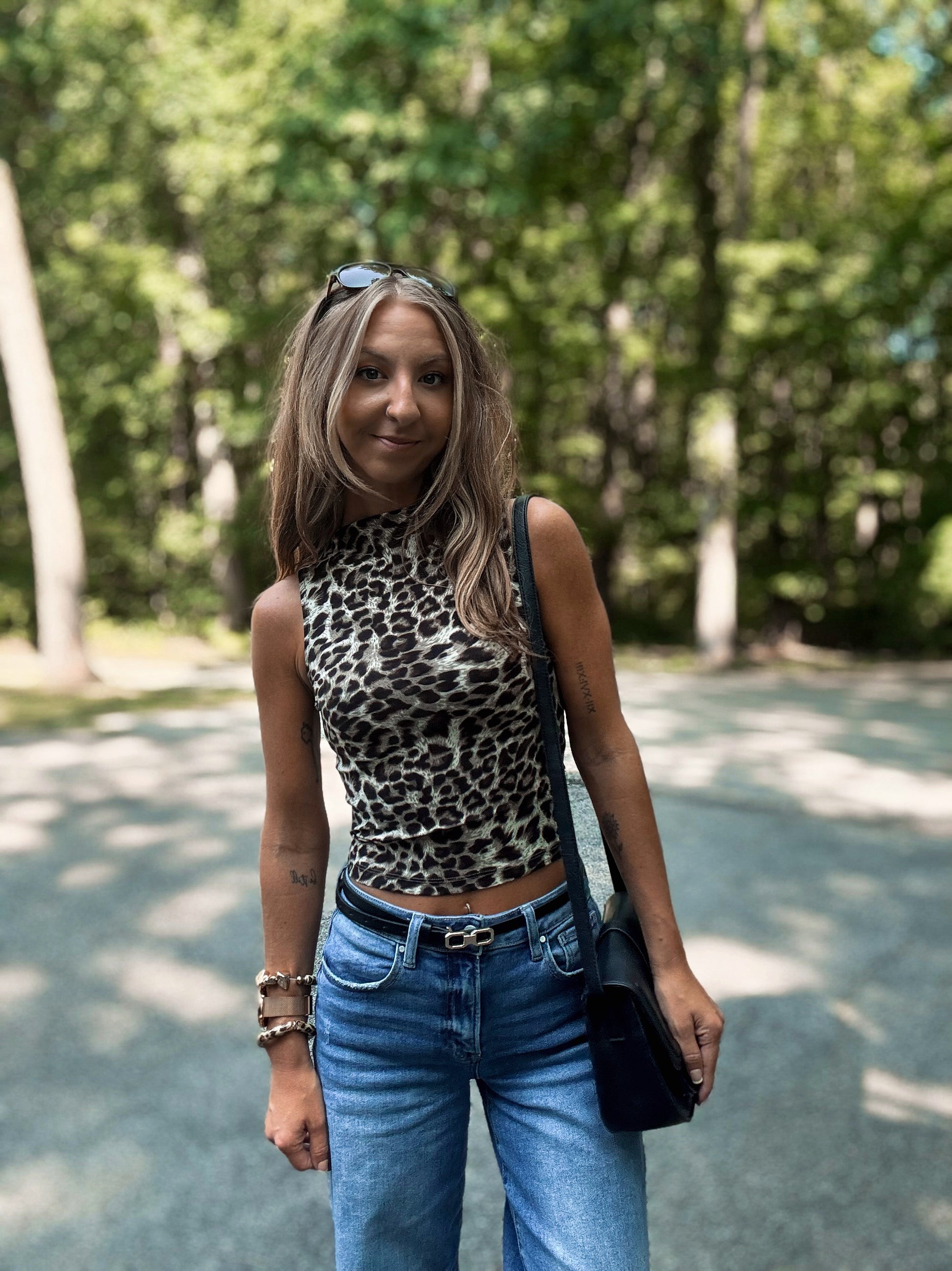 Meet the Urban Leopard Tank — your new go-to for effortless edge and chic versatility. Made from 95% polyester and 5% spandex, its super-stretchy fabric hugs every curve while keeping you comfortable, perfect for brunch dates or rooftop nights. The high neckline and sleeveless cut strike the perfect balance between sleek and daring, while the subtle leopard print adds a hint of attitude without shouting. Pair it with tailored pants, a leather skirt, or your favorite jeans — this tank is all about making every look feel intentional, bold, and unapologetically stylish.