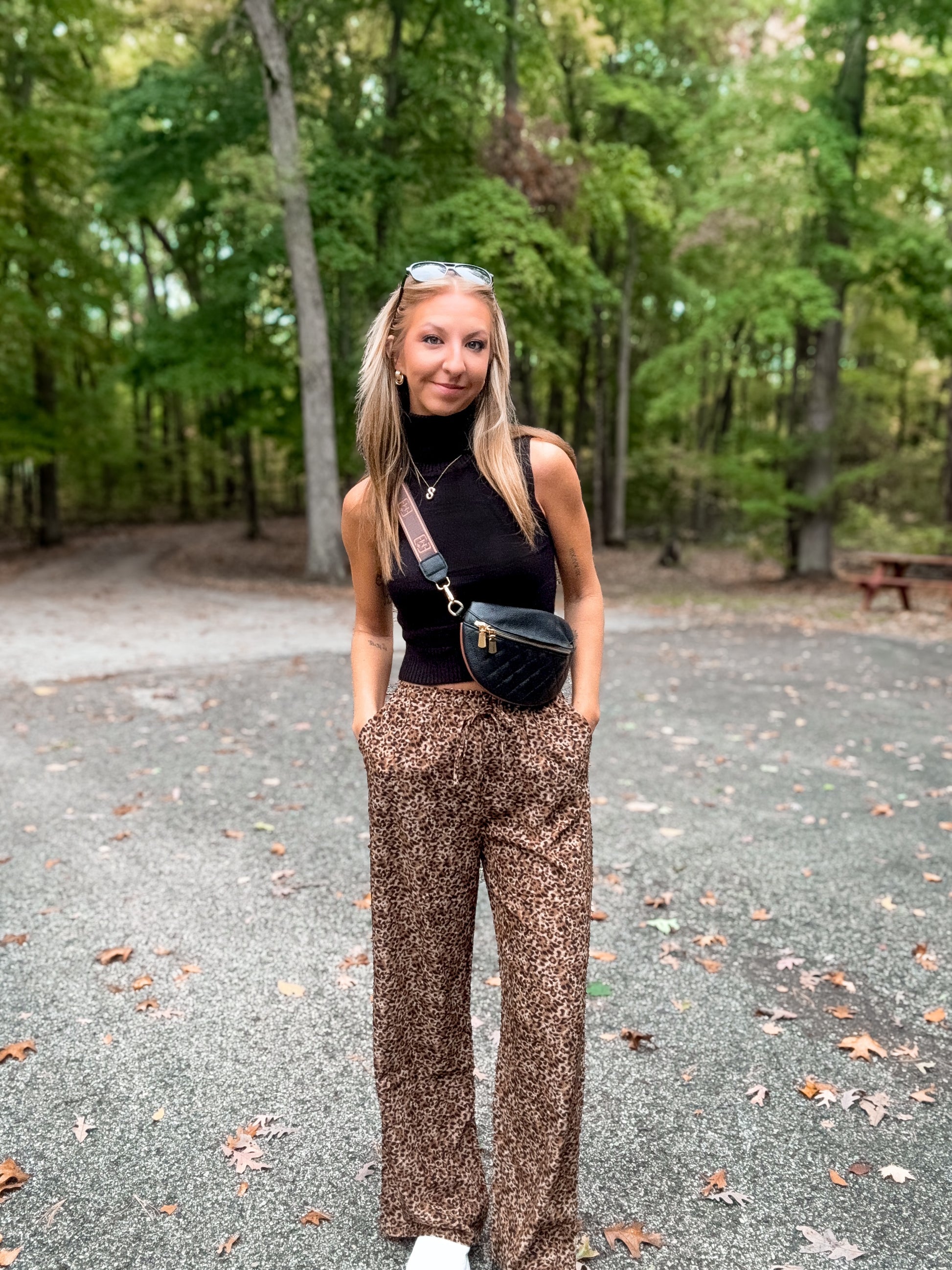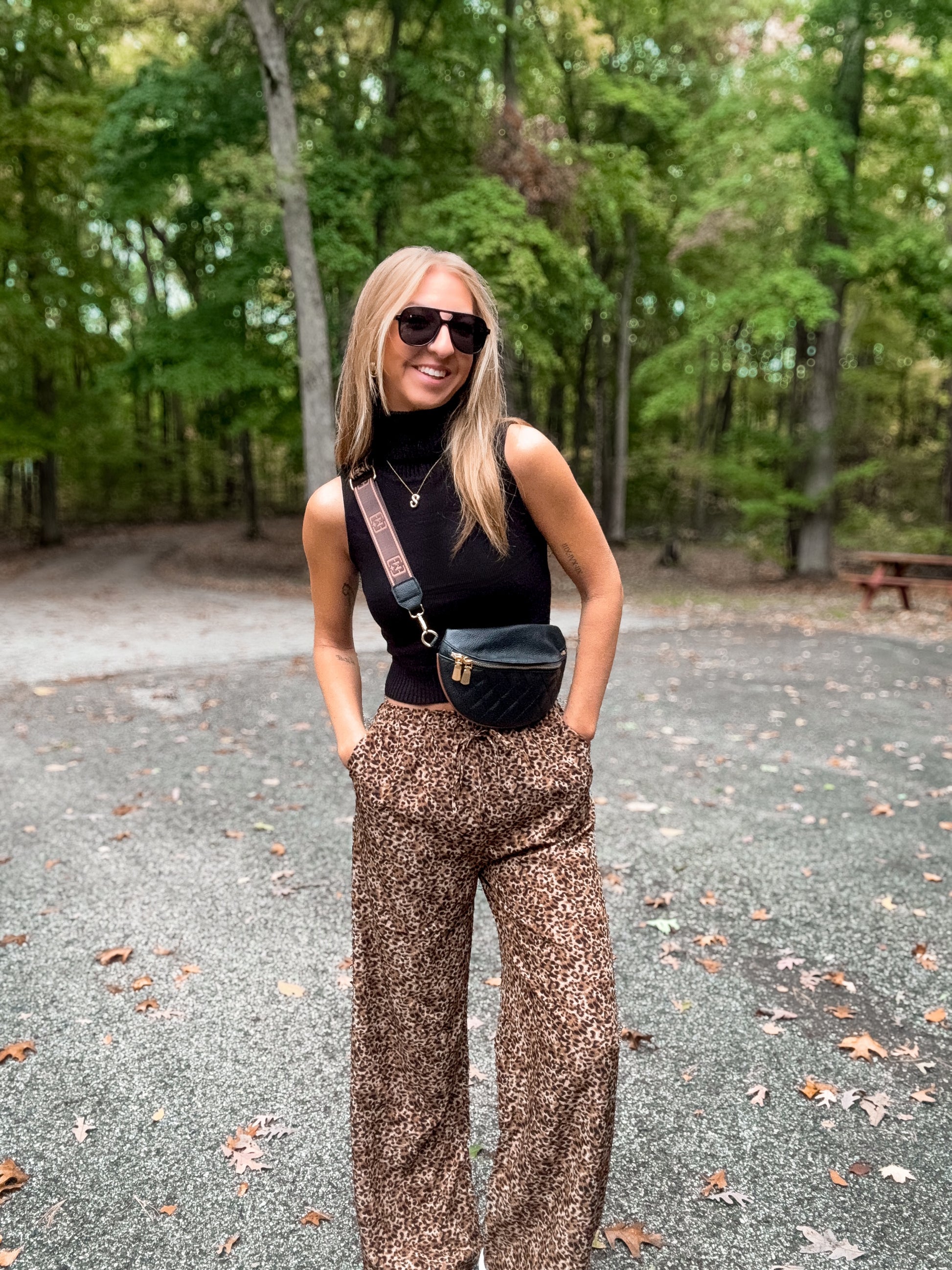 Crafted from our soft and stretchy printed Iceland fabric (94% polyester, 6% spandex), they move effortlessly with you while keeping their shape. The khaki and black leopard print adds that perfect pop of personality — whether you’re lounging in style or heading out with confidence.